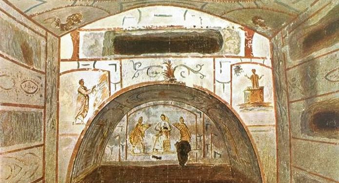 (Imagine dintr-o catacombă creștină – domeniu public)